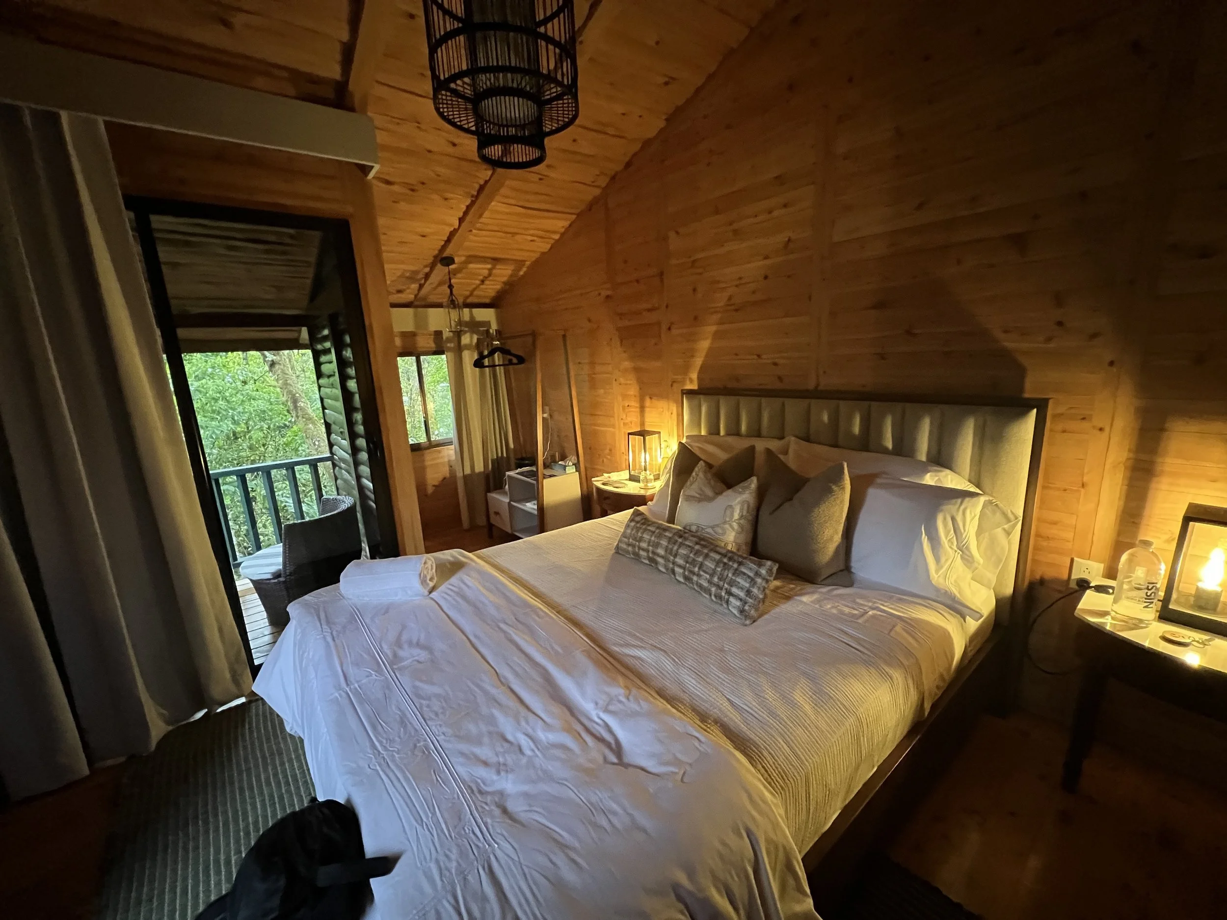 Perched at the highest point of the property, the VIP Mountain Cabin offers a deeply private and elevated retreat experience. Surrounded by sweeping views of forest covered mountains, this spacious cabin invites rest, reflection, and uninterrupted presence.